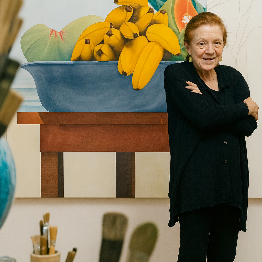 Her artistic journey reflects a continuous evolution: beginning with geometric abstraction in the 1960s, moving toward Pop‑influenced works, and ultimately embracing luminous figurative compositions that celebrate color, light, and cultural identity.